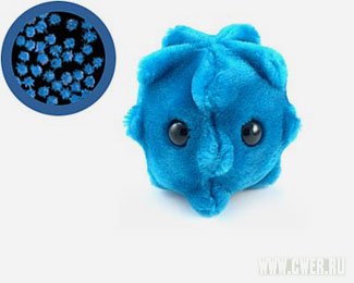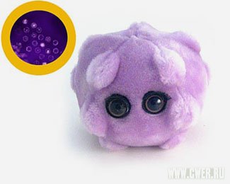 Многие и не догадываются, насколько милыми могут быть микробы, если их увеличить в миллион раз и одеть в плюш. А вот неизвестный дизайнер игрушек догадался. Насморк, некротический фасцит, ВИЧ, триппер, кишечная палочка и многие другие микробы были рассмотрены под микроскопом, скрупулезно обмеряны и превращены в чудеснейшие детские игрушки. Сейчас этих дивных и опасных уродцев можно найти и в России. Сомневаемся, однако, что ребёнок, познакомившись, скажем, плюшевым Гриппом, будет всерьёз следить за своим здоровьем.