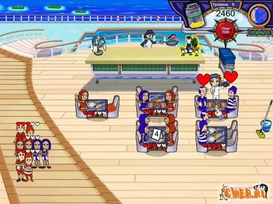Отличная игра о приключениях известной нашим игрокам Фло и ее подруги. На этот раз она собралась в круиз на огромном лайнере. Но при посадке она случайно уронила чемодан в море. У нее не осталось ни вещей, ни денег. А тут еще капитан лайнера просит ее помочь с обслуживанием ресторана. Правда, он обещает хорошо заплатить, а так же приобрести для Фло новый гардероб. И юная рестораторша решает взяться за этот нелегкий труд. Тем более, другого выхода нет…