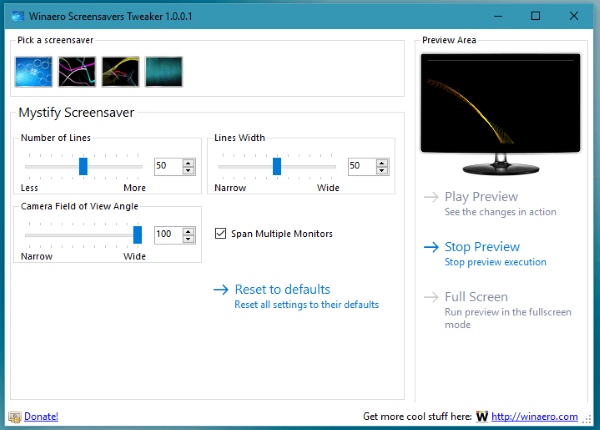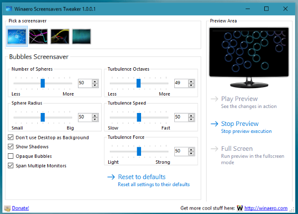 Winaero Screensavers Tweaker - программа для изменения скрытых настроек стандартных скринсейверов Windows Vista, 7, 8, 10.